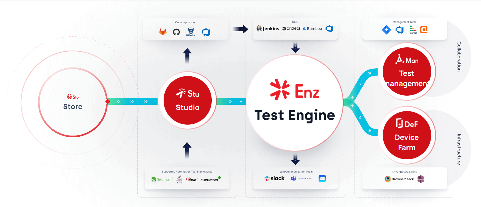 akaAT Studio cách mạng hóa việc sử dụng các khung kiểm tra tự động mã nguồn mở để loại bỏ sự phức tạp về kỹ thuật. Cuộc cách mạng này cho phép các nhà phát triển và QA thiết lập, tạo, chạy, báo cáo và quản lý các thử nghiệm tự động của họ cho các thử nghiệm trên web và di động một cách hiệu quả. Các thư viện mã nguồn mở mà akaAT Studio sử dụng là Selenium, Appium, WinAppDriver, REST Assured...