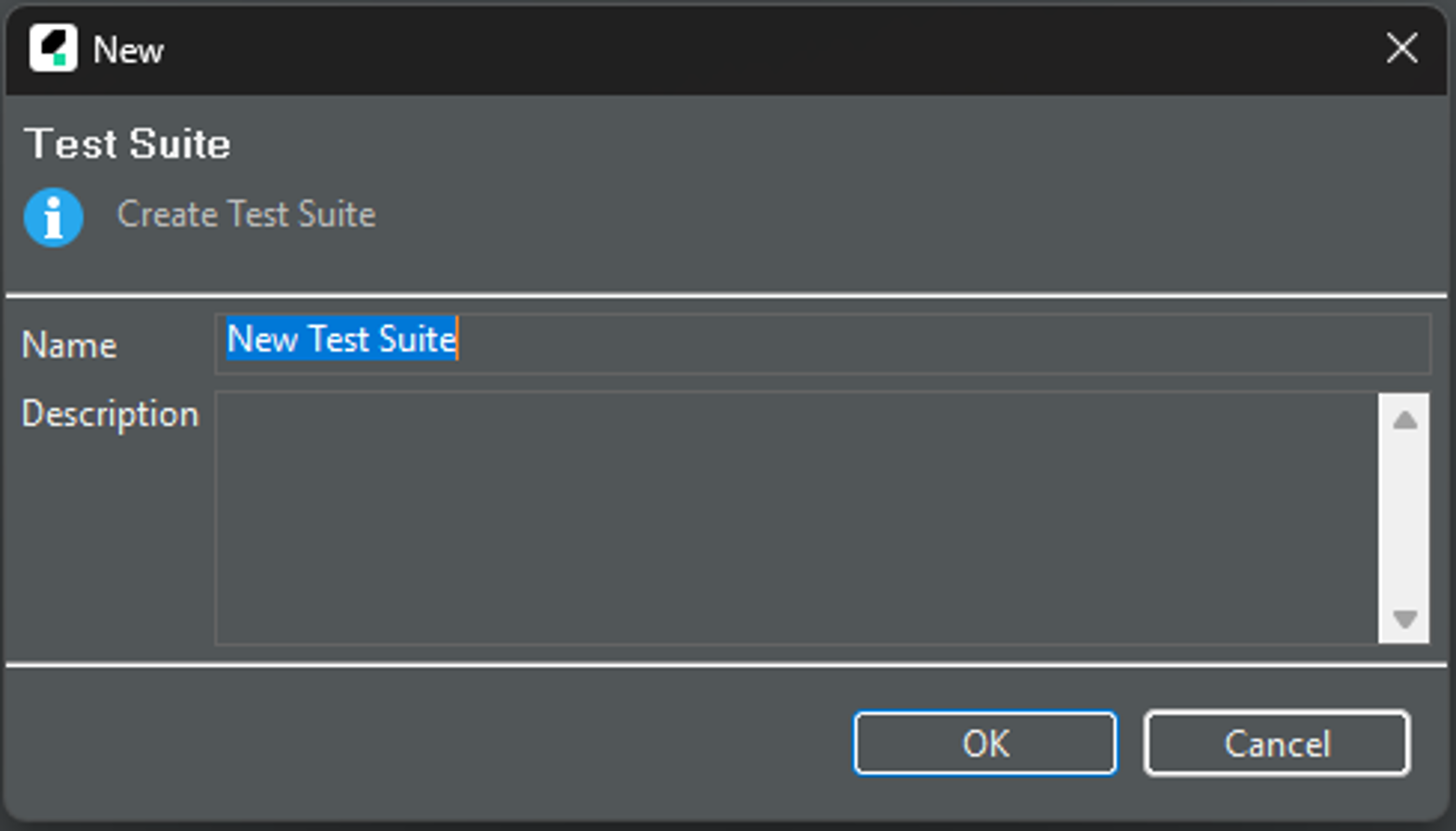 Nhập tên Test suite ở phần "Name" trên dialog "New"