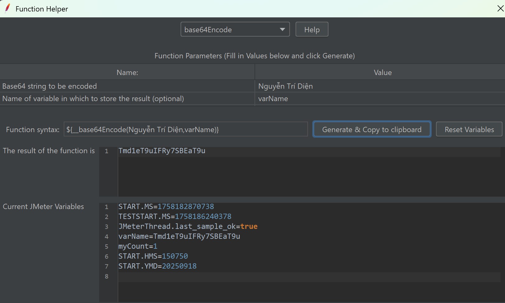 - Cú pháp: ${__base64Encode(string,varName)}