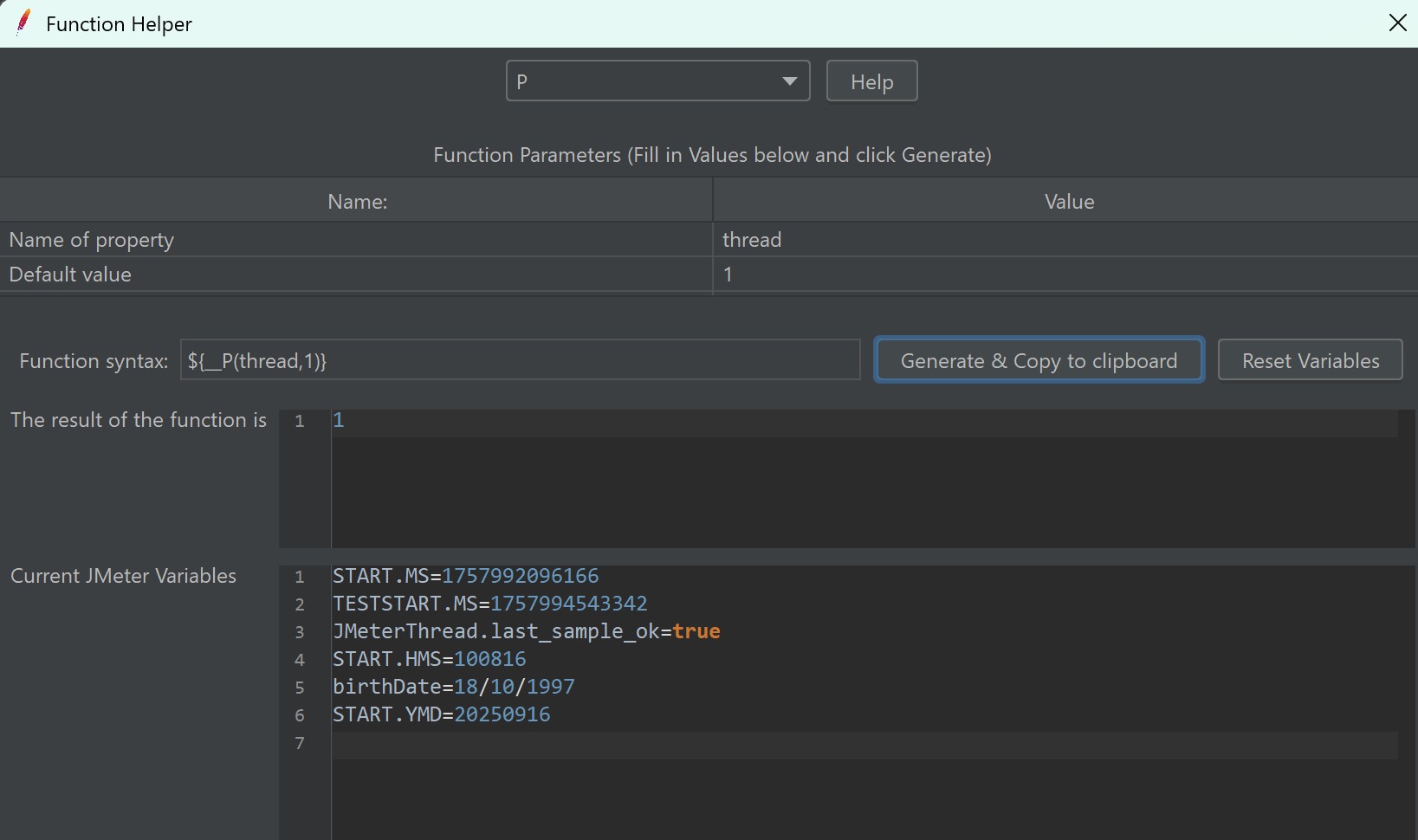 - Cách hoạt động: ${__P()} đọc JMeter properties (global cho toàn test). __P() là shorthand hay dùng khi truyền -J từ CLI. Biết rõ: properties khác variables (variables là thread-local). jmeter.apache.org+1
