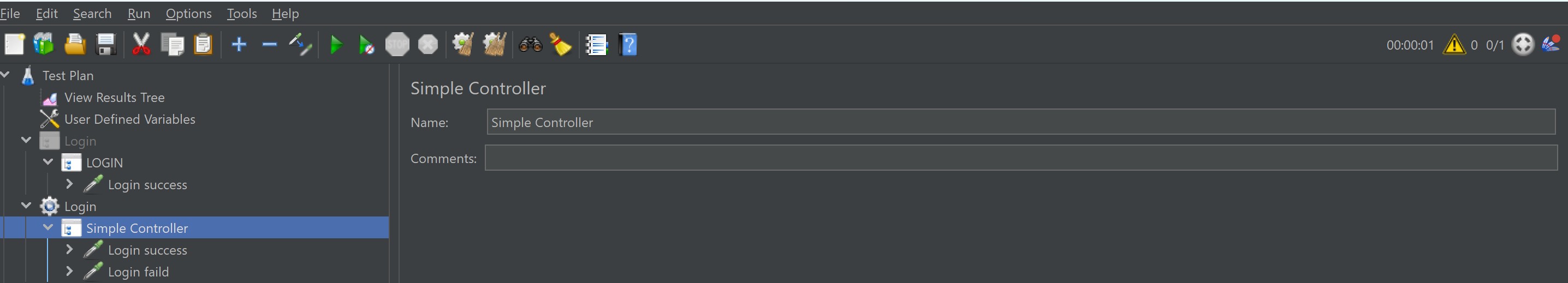 Trong kịch bản UserJourney.jmx, dùng Module Controller để gọi Login Flow trước khi chạy các API khác.