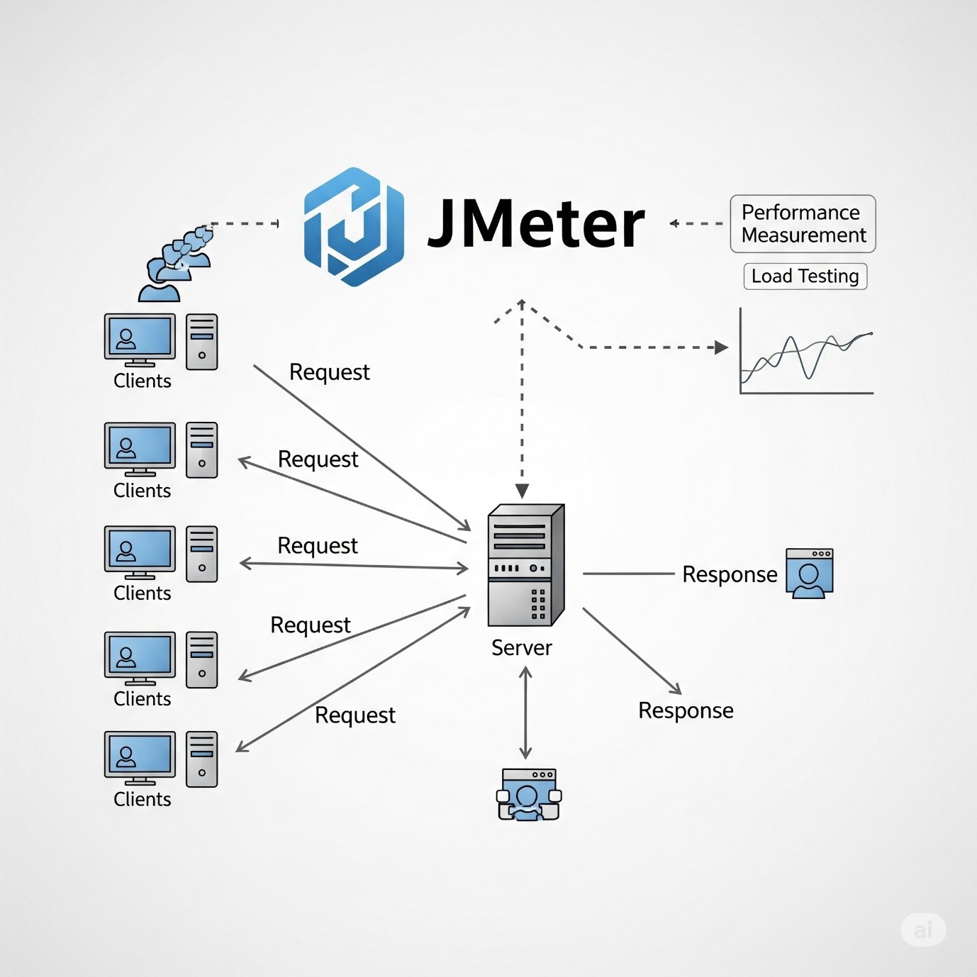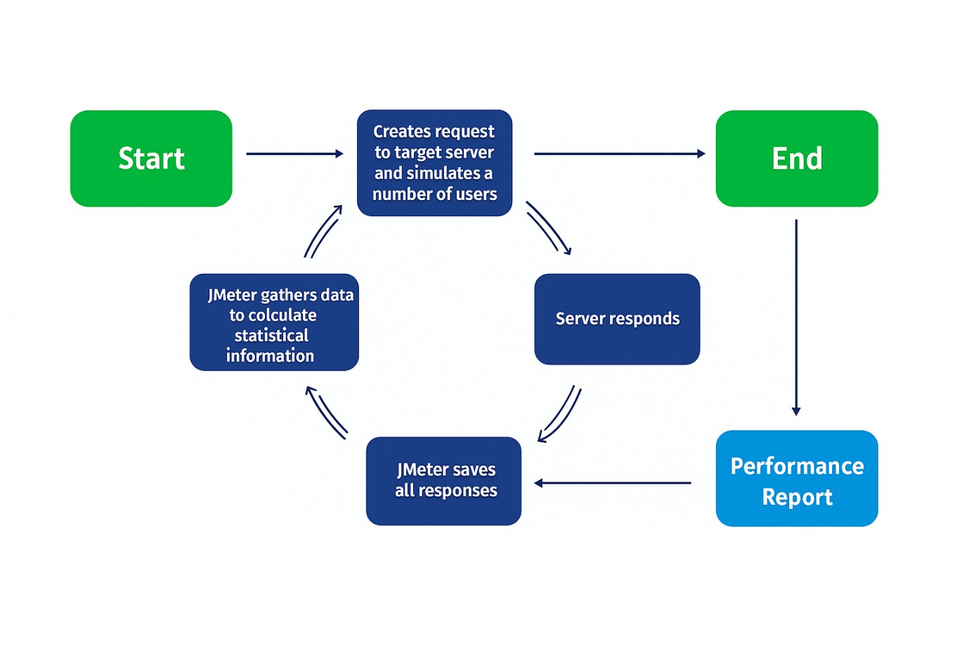 👉 Với N request, JMeter sẽ lặp lại quy trình N lần và sinh báo cáo (Report).