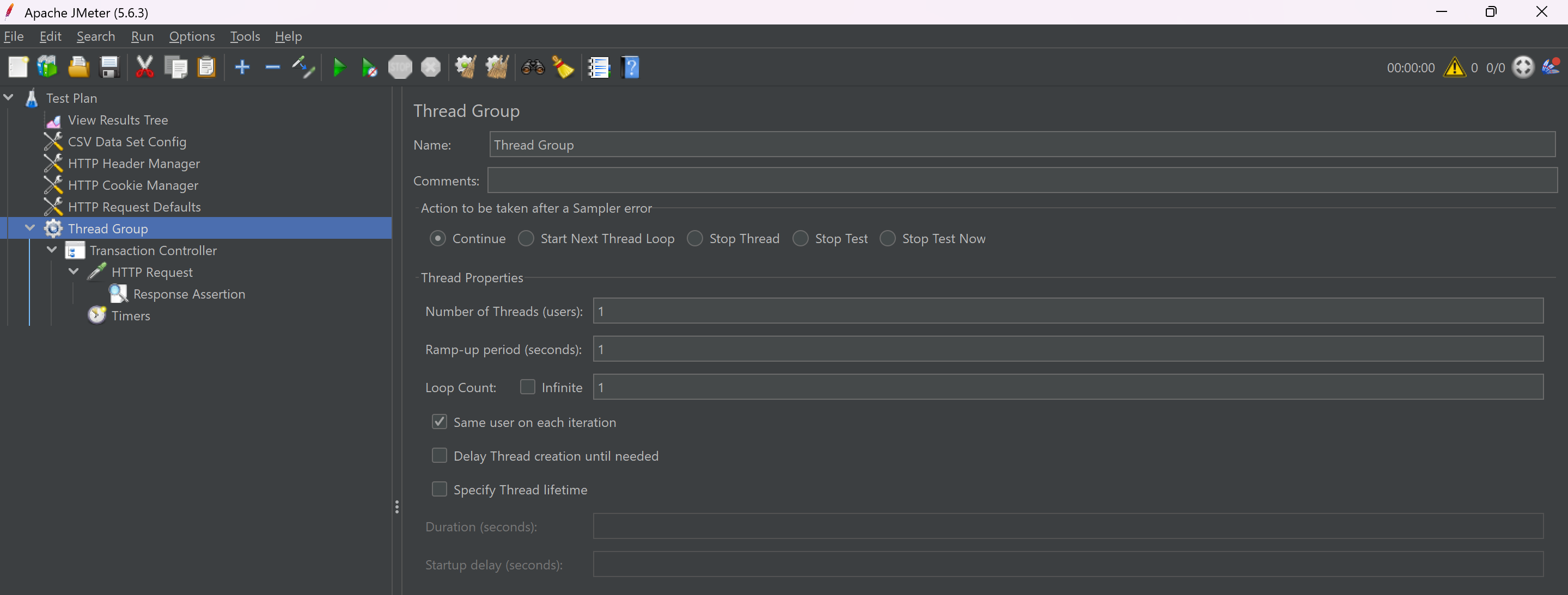 - Thread Group: Xác định số người dùng ảo, thời gian ramp-up, số vòng lặp.
