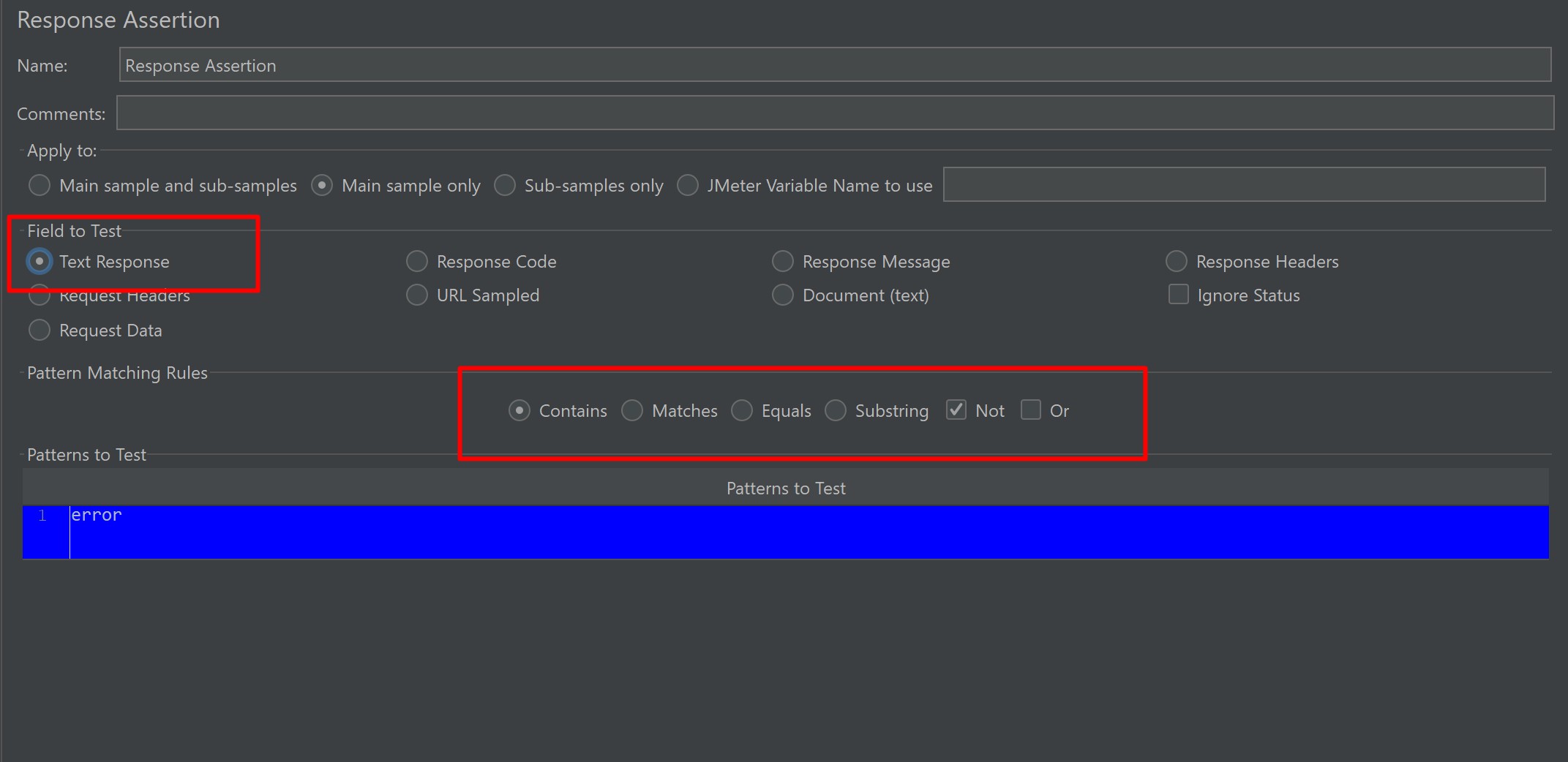 Với JSON/XML phức tạp → nên dùng thêm JSON Assertion hoặc XPath Assertion thay vì chỉ dùng Response Assertion.