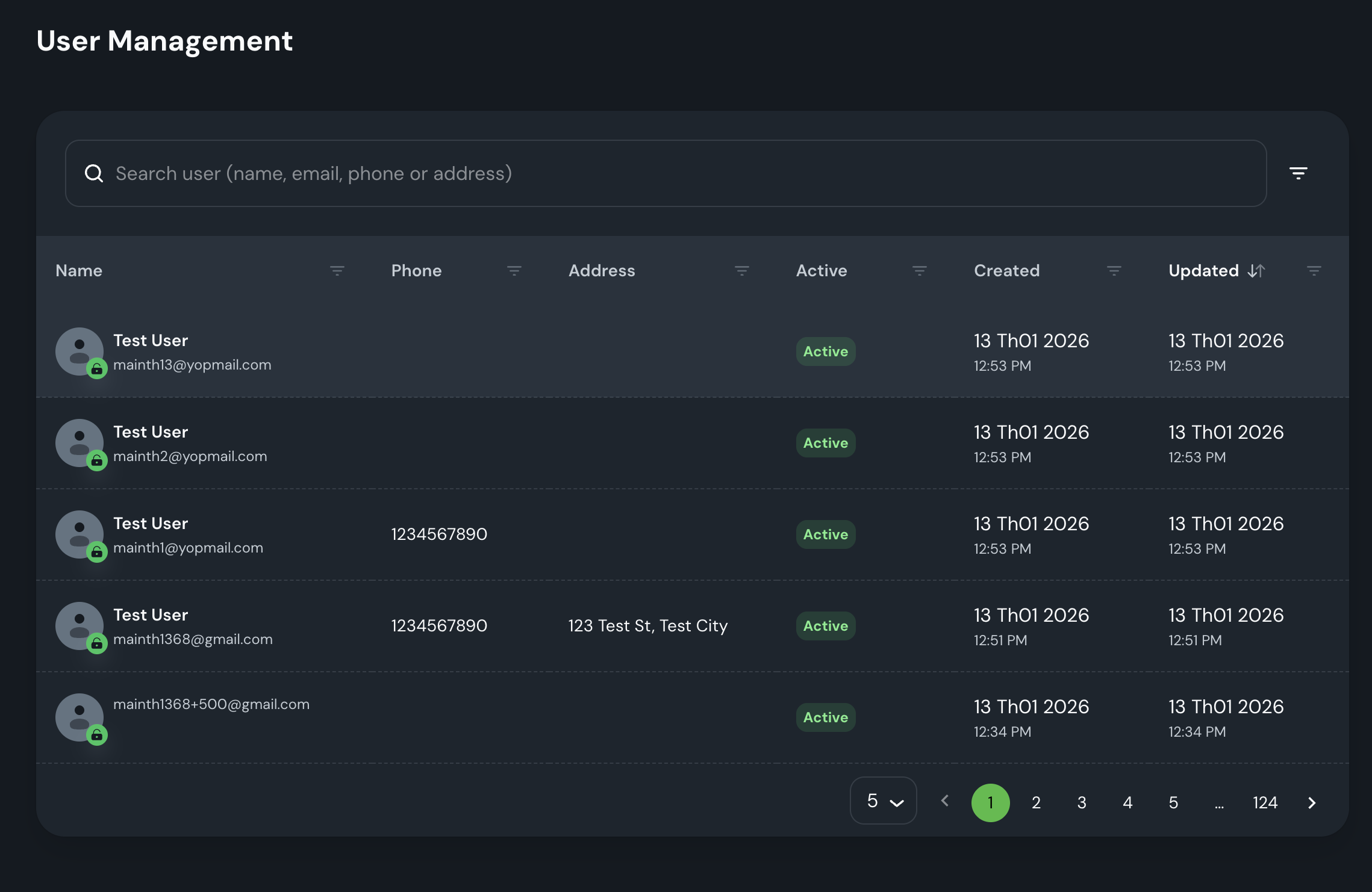 Danh sách user (1000+ records)