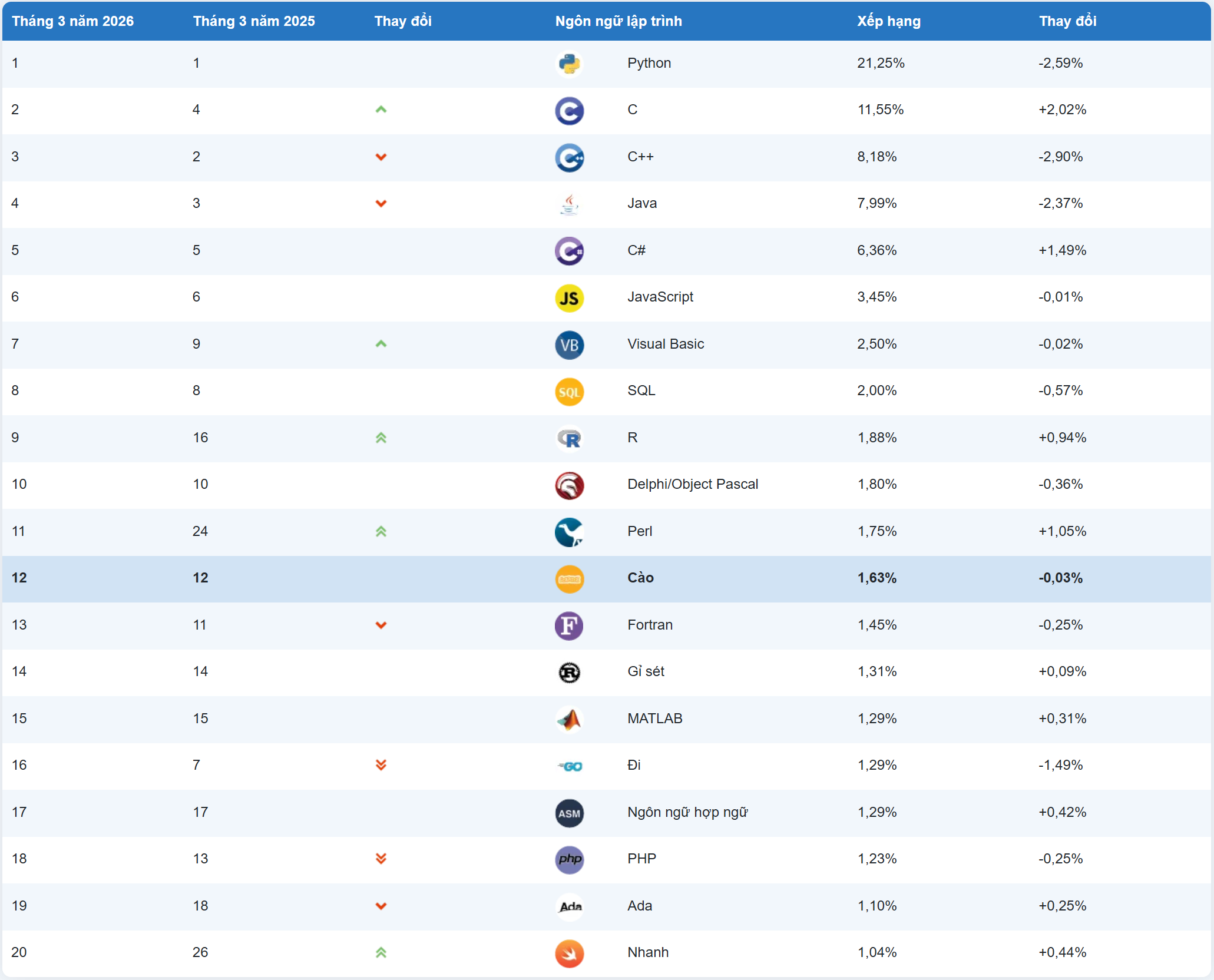 ✅ So sánh Python với các ngôn ngữ phổ biến khác.