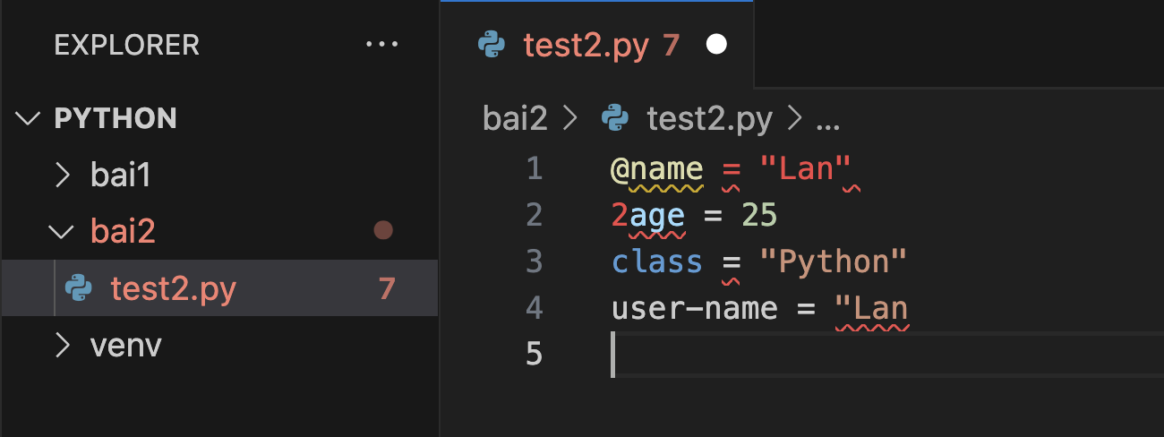 2age = 25→ Sai vì biến không thể bắt đầu bằng số -